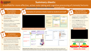 Summary Sheets: A scaffold for more effective, active note-taking and cognitive processing of (remote) lectures – Jo Rushworth, Rachel Cornish, Harlin Gulati and Mansi Patel (De Montfort University)
