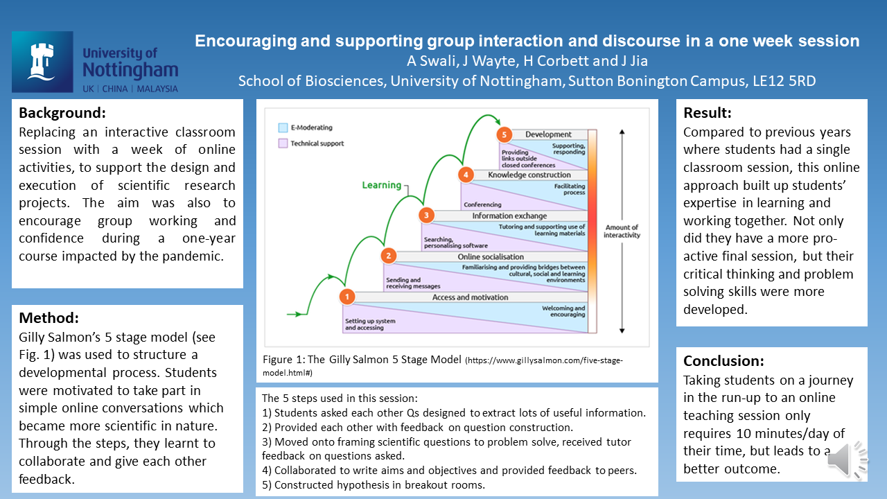 Encouraging and supporting group interaction and discourse in a one week session – Angie Swali, Judith Wayte, Hannah Corbett and Jianhua Jia (University of Nottingham)